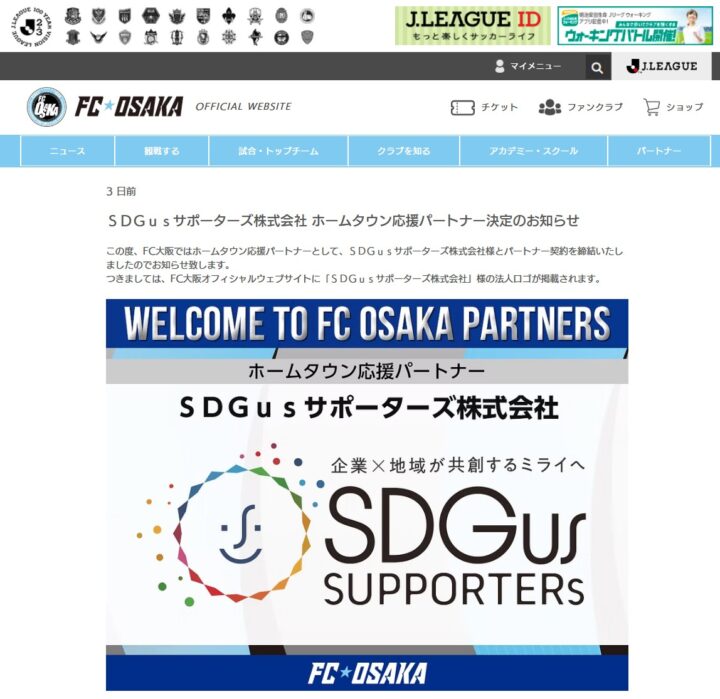 この度、SDGusサポーターズ株式会社は、FC大阪とホームタウンパートナー契約を締結いたしました。